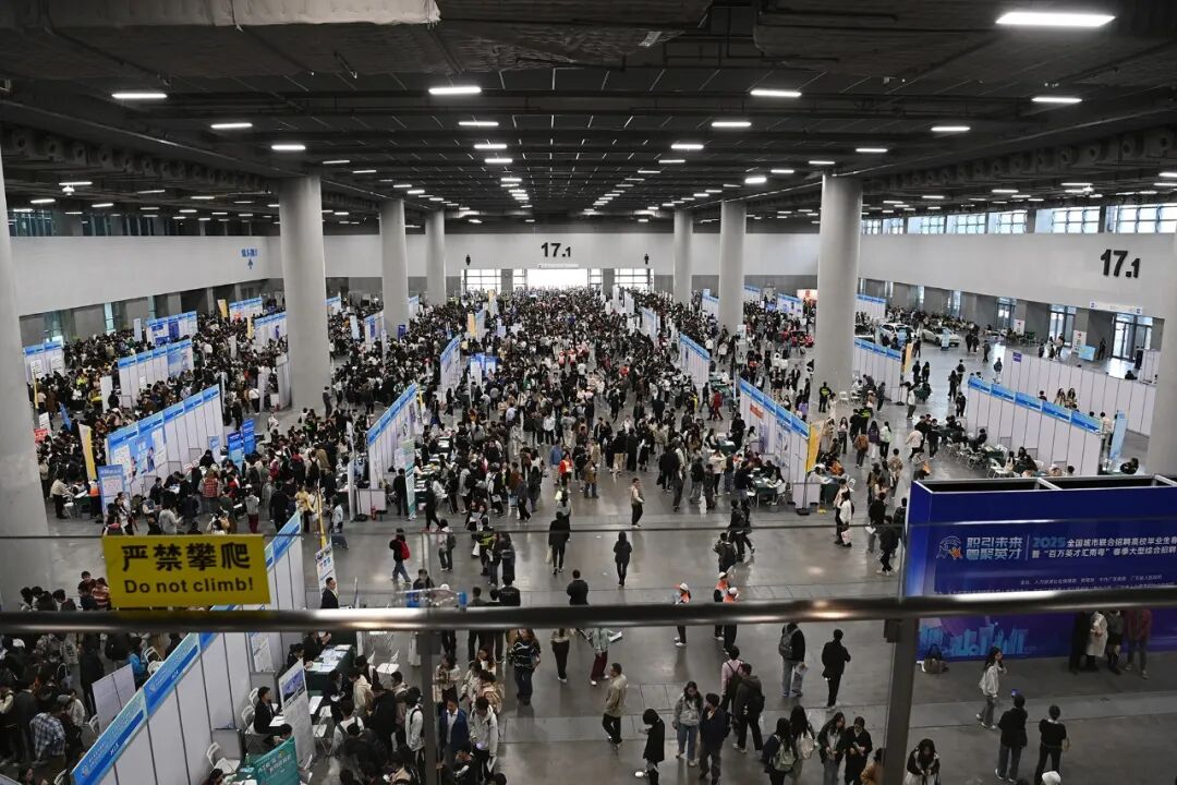 2025年全国城市联合招聘高校毕业生春季专场活动启动仪式暨“百万英才汇南粤”春季大型综合招聘会现场。周志旺 摄