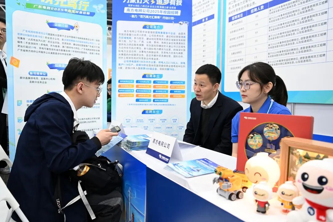 孟振平表示,中央人才工作会议以来,南方电网公司深入贯彻落实习近平总书记关于加快建设世界重要人才中心和创新高地的重要论述精神,全面融入和服务粤港澳大湾区人才高地建设。本次专场招聘,公司发布1100多个招聘岗位,覆盖数字电网、新型储能、人工智能等多个前沿领域,并在现场设置招聘咨询展位。诚挚邀请广大青年朋友到广东来、到南方电网来,共同为我国能源电力高质量发展谱写崭新篇章,以新担当新作为更好服务支撑广东在推进中国式现代化建设中走在前列。