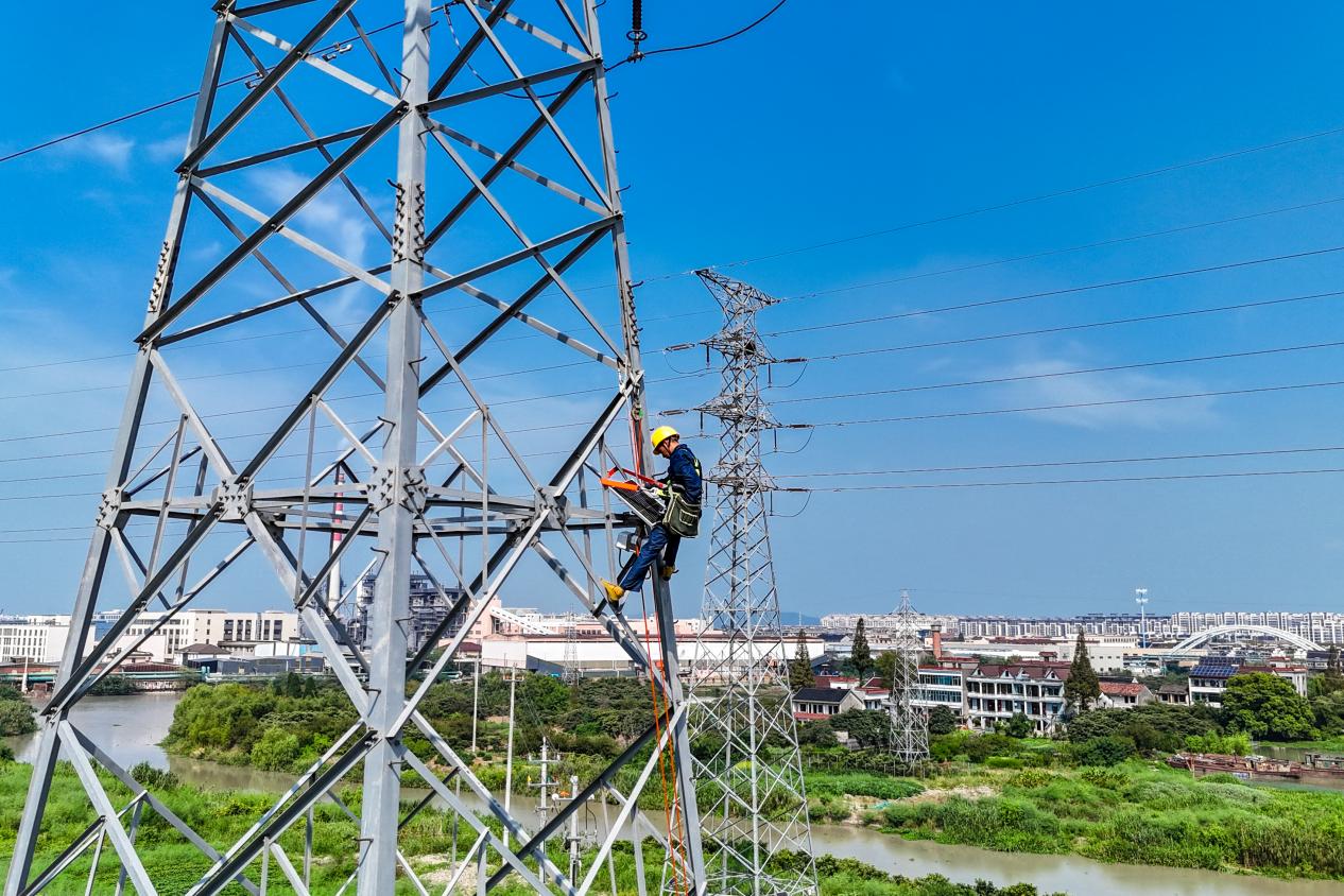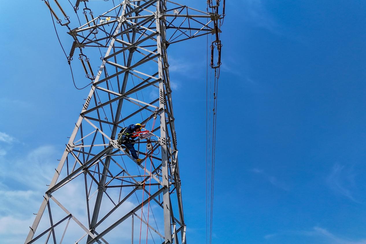 当天,国网德清县供电公司输配电运检中心派出技术团队,携带专业设备深入作业现场。眼下“秋老虎”余威部件,铁塔表面温度极高,即便隔着专业手套,工作人员仍可感受到灼热。他们严格按照安全规程,一步步攀爬至数十米高的铁塔作业点。尚未到达安装位置,汗水早已浸透他们的工装。高空作业条件复杂,阳光直射、毫无遮蔽,工作人员仍专注完成每一道安装程序,眯着眼睛精准操作,展现了极高的职业素养。