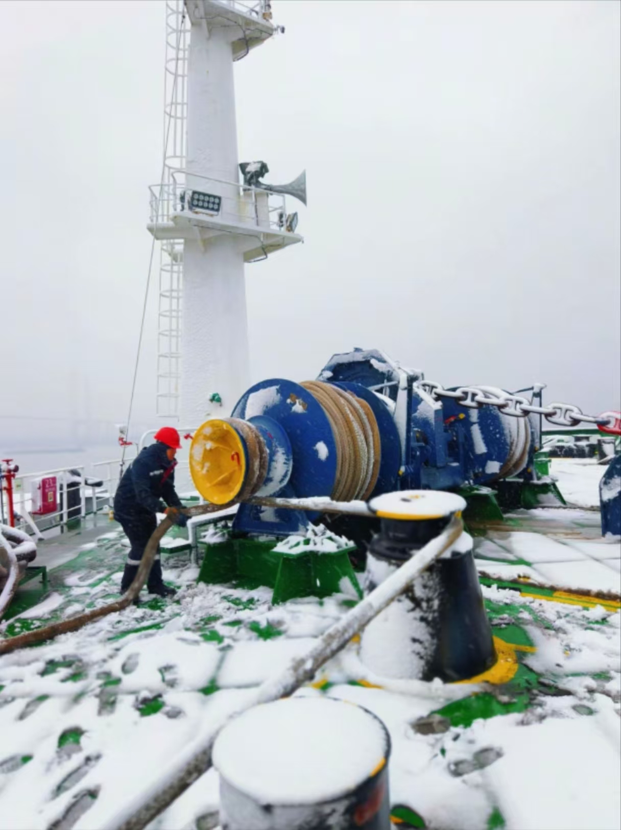 面对寒潮给运输带来的挑战,该公司立足“防”字抓落实,协同芜湖长能公司完善应急预案,提前部署防滑防冻措施。依托24小时监控值班机制,科学调度船舶、优化航线与装卸进度,为运输船舶配备防滑设施、加厚防寒装备,全力保障煤炭运输通道安全畅通,守好电煤供应的“生命线”。
