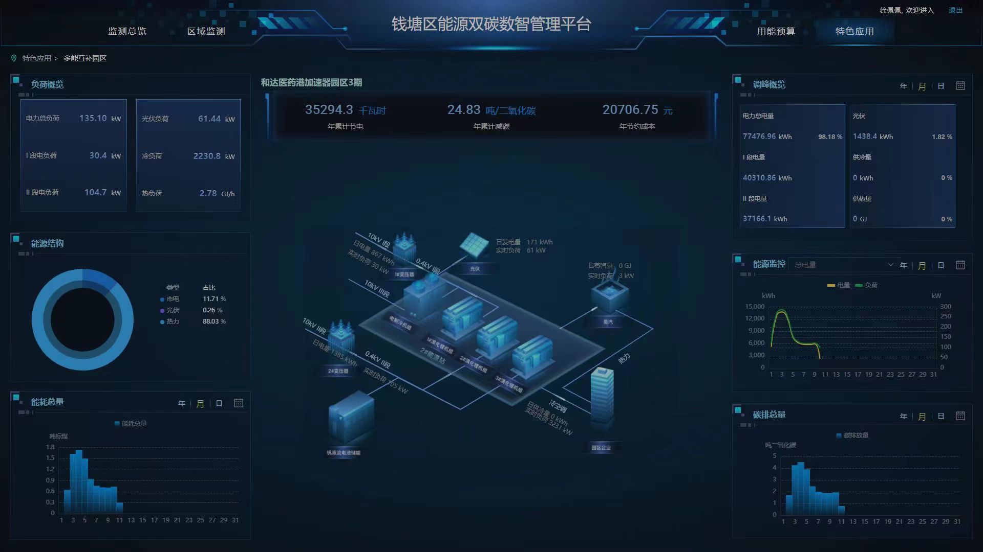 配图1:医药港小镇多能互补联供项目数据接入钱塘区能源双碳数智平台