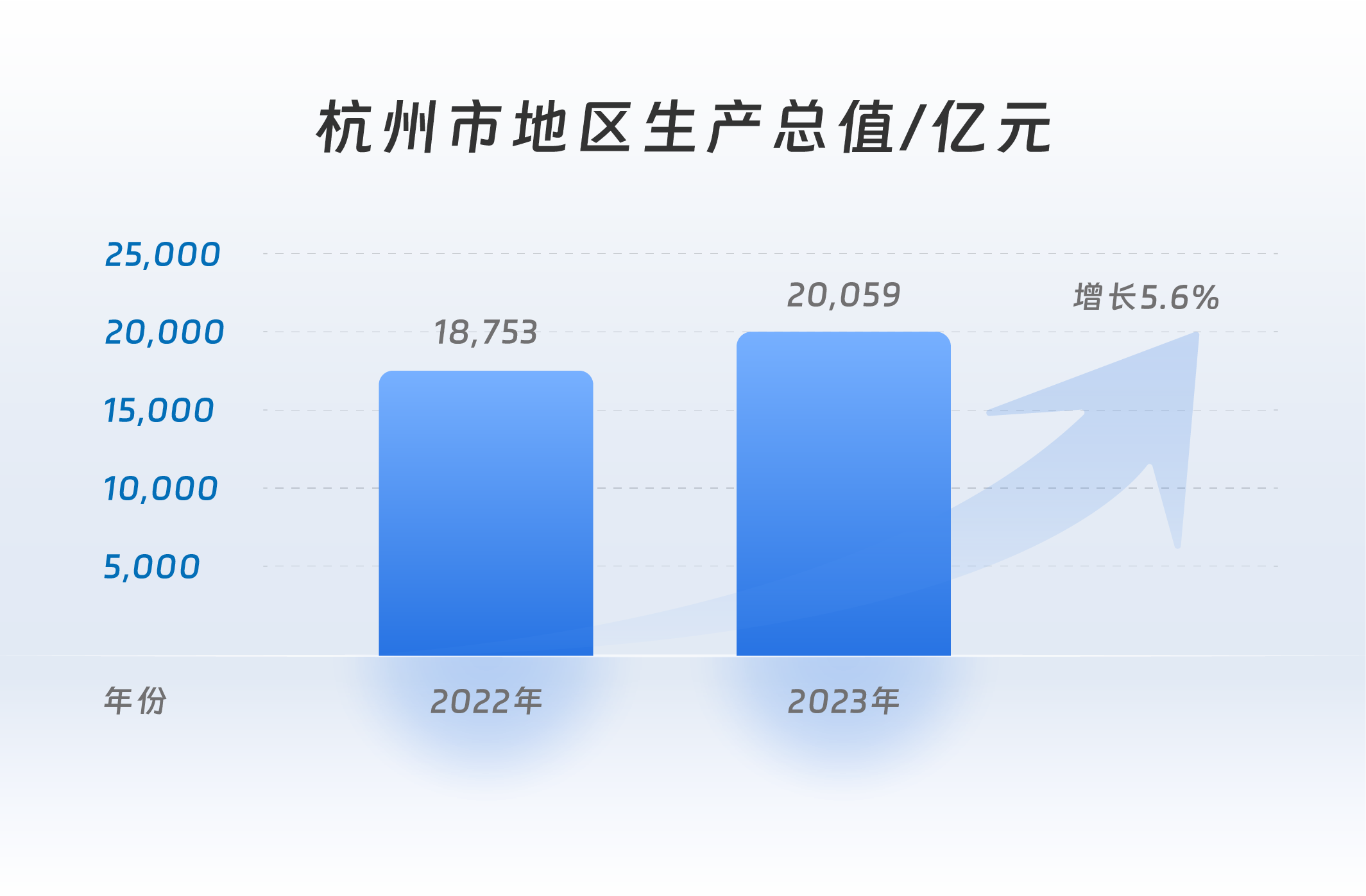 日前,杭州市统计局、国家统计局杭州调查队发布2023年杭州经济运行情况数据。2023年,杭州实现地区生产总值(GDP)20059亿元,按不变价格计算,比上年增长5.6%。