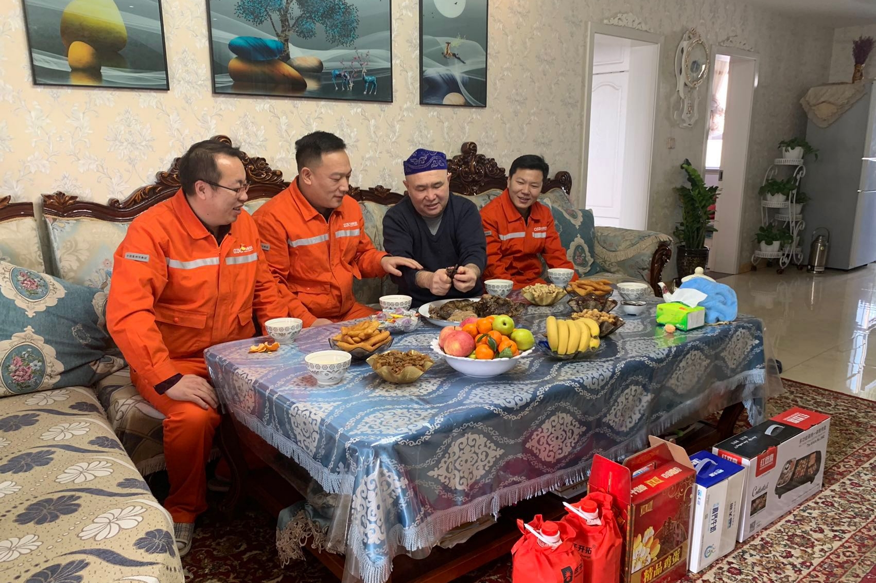 中国能建易普力新疆公司职工到吾买尔别克·沙力家慰问。
