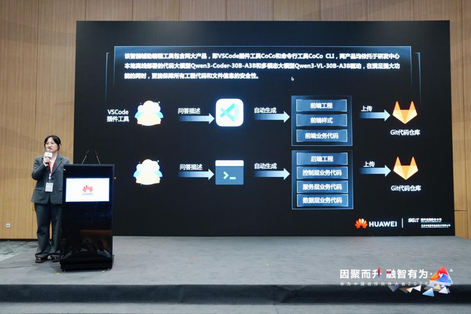 本次大会以“因聚而升 融智有为”为主题,聚焦人工智能驱动产业升级,汇聚各行业生态伙伴与技术专家,共探智能化转型路径。大会现场,中电普华围绕“大模型+行业应用”核心方向,重点呈现了该公司基于昇腾AI算力的创新成果。其中,由该公司自研的智能辅助编程工具成为焦点,吸引众多参会嘉宾驻足交流。该工具是基于大模型与智能体技术构建的智能化辅助开发工具,可实现代码自动生成、工程级理解分析、研发流程智能化等功能,能有效提升研发人员开发效率与代码质量,旨在提升电力行业信息化、智能化水平,助力企业降本增效。