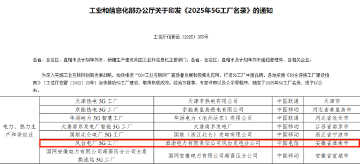中国能源新闻网讯(刘志飞 王蒙)近日,国家工业和信息化部信息通信管理局发布了《2025年5G工厂名录》公示名单,淮浙电力有限责任公司凤台发电分公司(以下简称“凤电公司”)5G工厂名列其中,是浙江省能源集团有限公司首次入选。