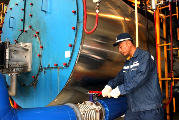 在神朔铁路公司后勤服务中心锅炉房,司炉工张贺芳有条不紊地操作着天然气锅炉系统人机界面。屏幕上,红色的热损耗曲线持续下降,绿色的能源利用率曲线稳步上升。