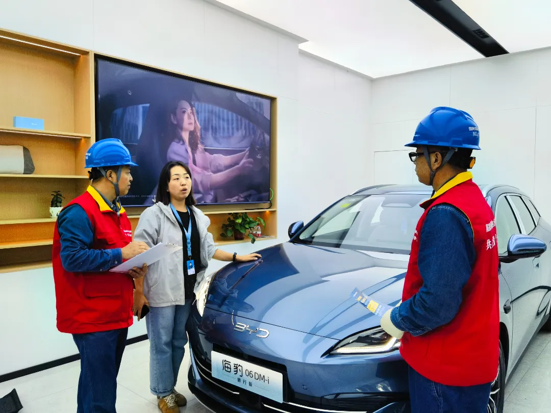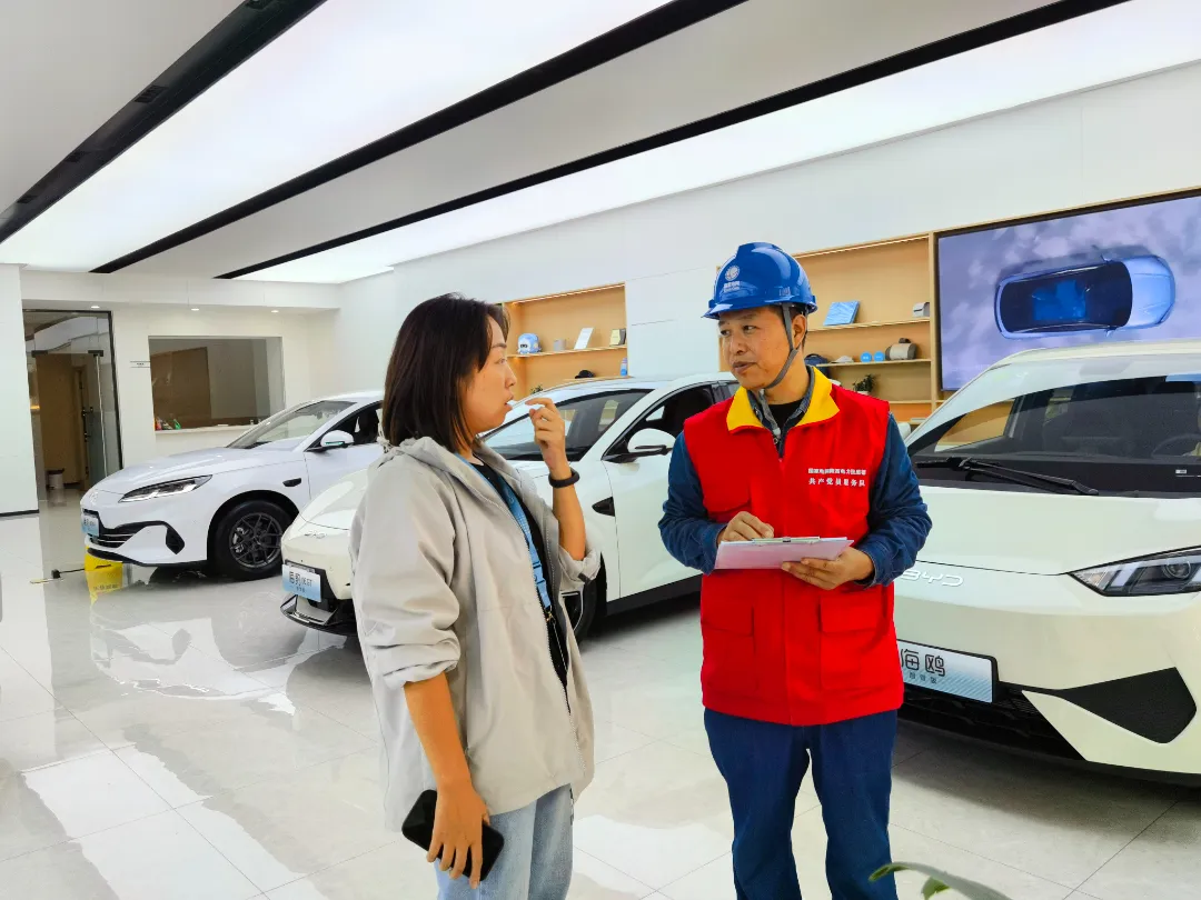 走访期间,服务队深入企业销售展厅、售后区域及充电设施现场,细致排查用电设备运行状况、电能质量等,并就未来业务拓展可能涉及的电力增容需求进行沟通。与比亚迪公司相关负责人李星进行深入交流,认真听取企业在供电可靠性、能效管理、应急保电以及充电基础设施和配套电网建设等方面的具体建议。