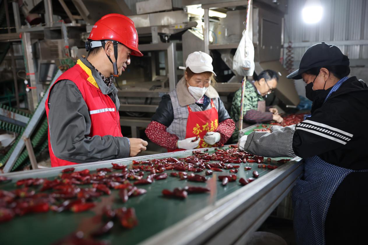 走进车间,映入眼帘的是一片火热的劳动场面。数十名工人身着工装,在自动化生产线和传统工作台前紧张有序地忙碌着。一袋袋色泽红艳、个头饱满的新鲜辣椒,经分拣、清洗后,被送入现代化的加工设备中,摇身变成辣椒段、辣椒酱、烘干辣椒等产品,通过线上线下渠道销往全国各地。