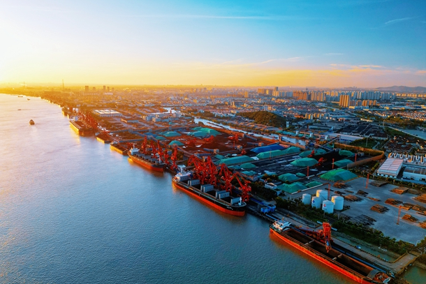 销售集团组织的煤炭资源在扬子江码头中转过驳作业。