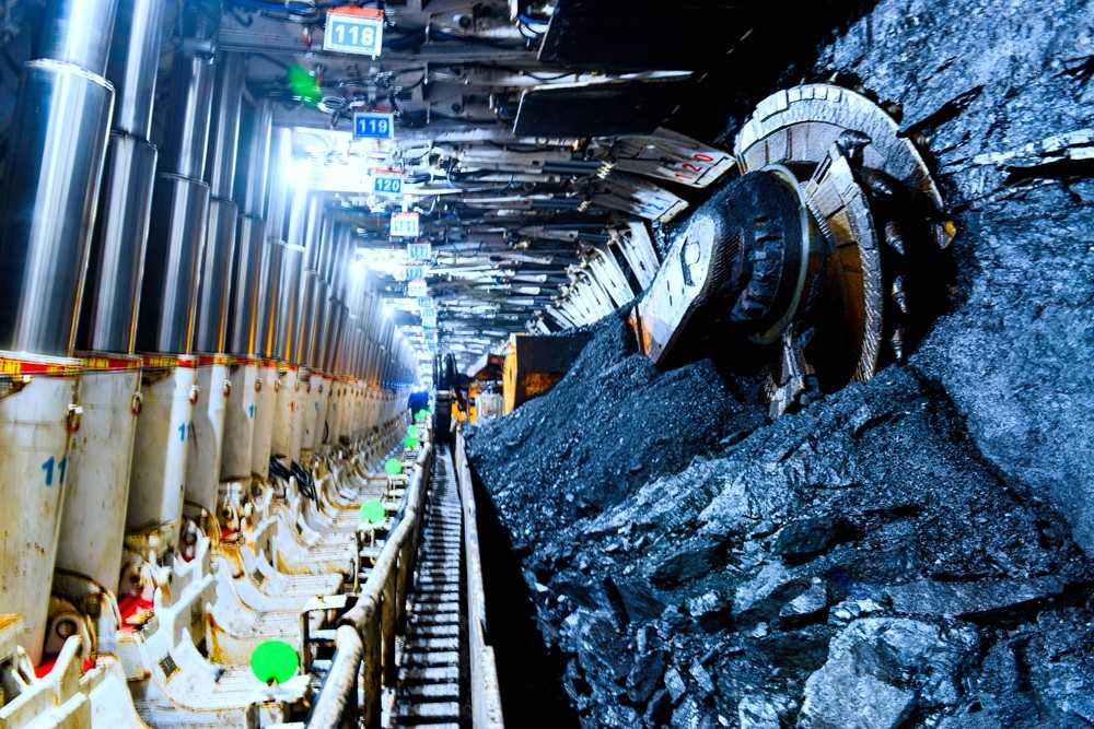 图为骆驼山煤矿智能化综采工作面生产现场