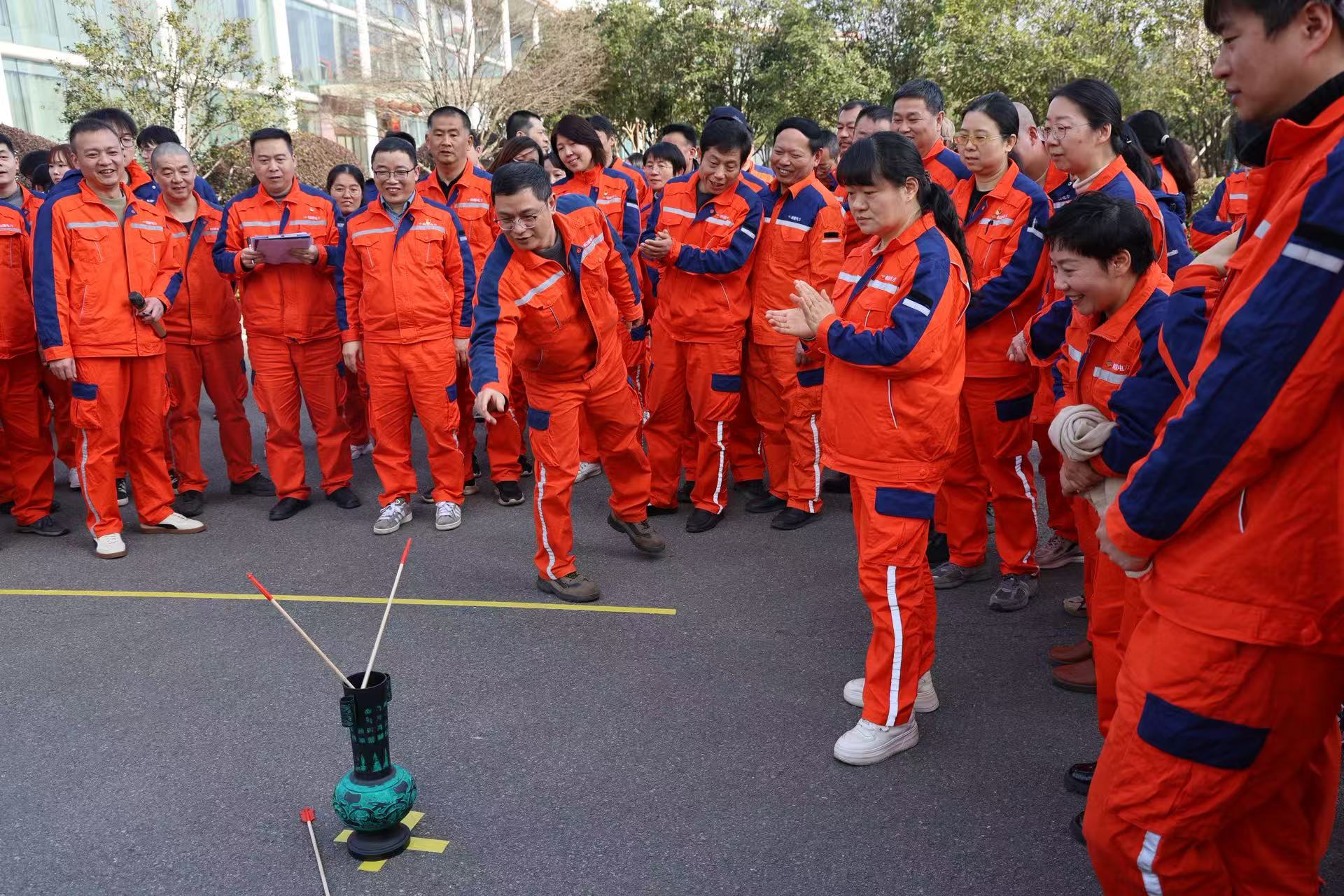 拔河比赛现场,最是能凝聚人心、点燃热情,队员们紧握长绳、脚蹬实地,身体后倾、齐心协力,在整齐划一的号子声中全力以赴,绳子上的红线在两队之间来回拉锯,紧张刺激的场面牵动着每一个人的心;背向接力赛中,考验的不仅是速度,更是队友间的信任与默契,队员们背向而立、相互配合,交接接力棒时的眼神交汇、动作衔接,都是日常协作默契的生动体现;跳绳项目大家齐声喊着节拍,摇绳队员稳扎稳打,跳绳队员步伐统一,哪怕有人不慎失误,也会第一时间调整状态、重新加入,没有人抱怨、没有人退缩,唯有相互鼓劲、携手前行,用整齐的跳跃诠释着“心往一处想、劲往一处使”的凝聚力;投壶项目中,没有激烈的肢体对抗,却有着满满的协作与包容,参赛职工凝神聚力、稳步投壶,队友们在一旁耐心指导、轻声鼓励,四大项目轮番上演,赛场之上不分岗位、不分层级,大家都是并肩作战的队友,每一次努力都值得肯定,每一份协作都彰显着团结的力量。