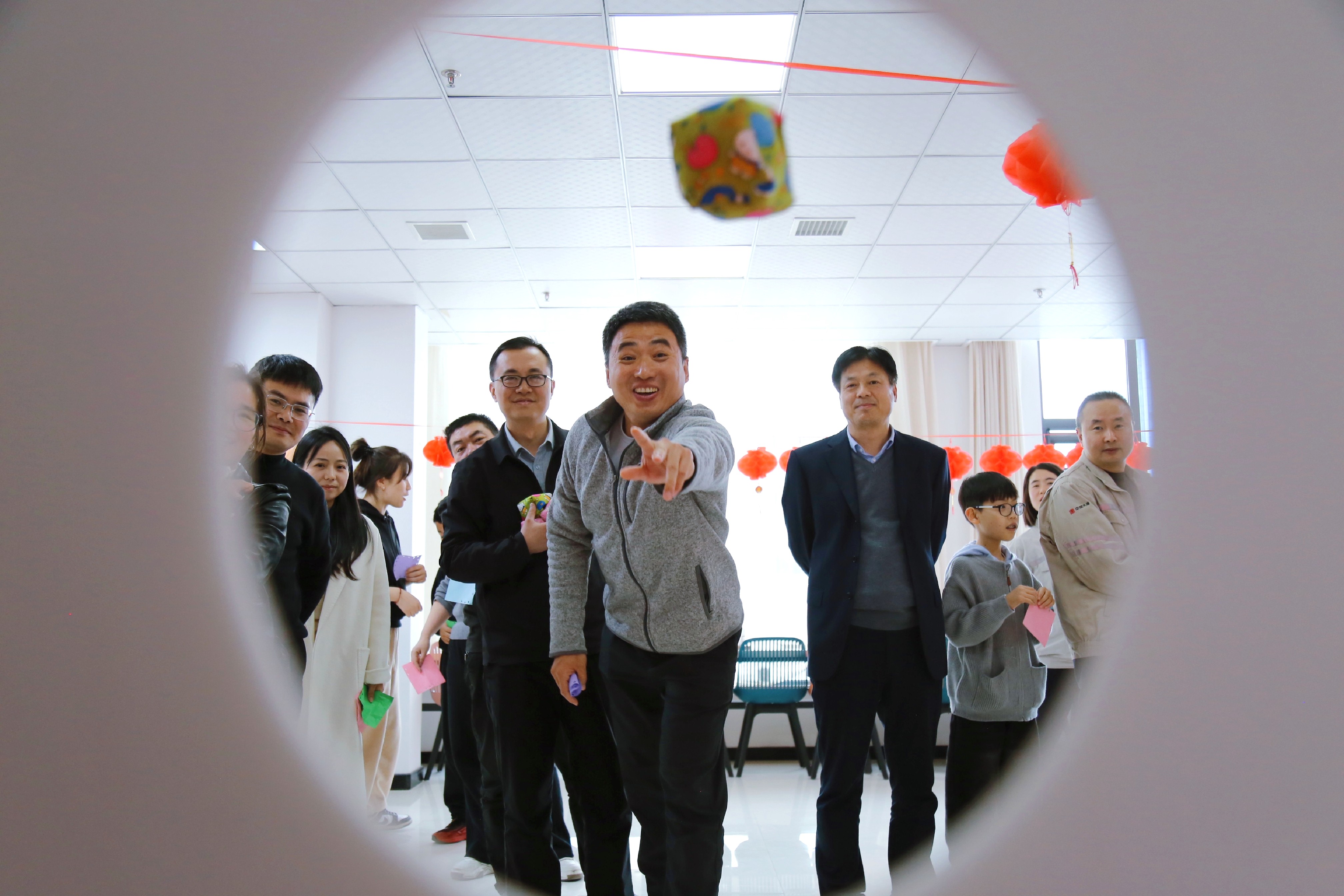 除了传统的猜灯谜,各分工会还设置了妙趣横生的互动游戏环节。“投壶”考验手眼协调,参与者屏息凝神,手起箭落,引得阵阵喝彩;“套圈”区排起了长队,大家瞄准目标,一试身手;“运汤圆”接力赛更是将活动推向高潮,职工们手持托盘,小心翼翼地运送“汤圆”。