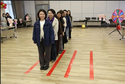 本次活动设置了手势舞表演、喂苹果、纸杯投乒乓球和转盘大挑战四大趣味游戏。活动伊始,全体女员工集体表演了青春洋溢的手势舞,整齐划一的动作配合动感十足的音乐,瞬间点燃全场热情。