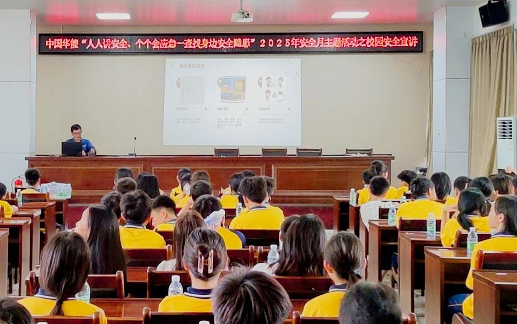 为深入贯彻习近平总书记关于安全生产的重要论述和重要指示批示精神,积极落实集团公司、新能源公司2025年”安全生产月”重点活动和工作措施,充分发挥基层党组织和党员在安全生产中的作用,进一步深化”党建+安全生产365”活动,6月6日,华能新能源广东分公司走进塘蓬中学,开展”人人讲安全、个个会应急——查找身边安全隐患”安全宣传进学校活动,为即将到来的全国”安全宣传咨询日”营造浓厚氛围。