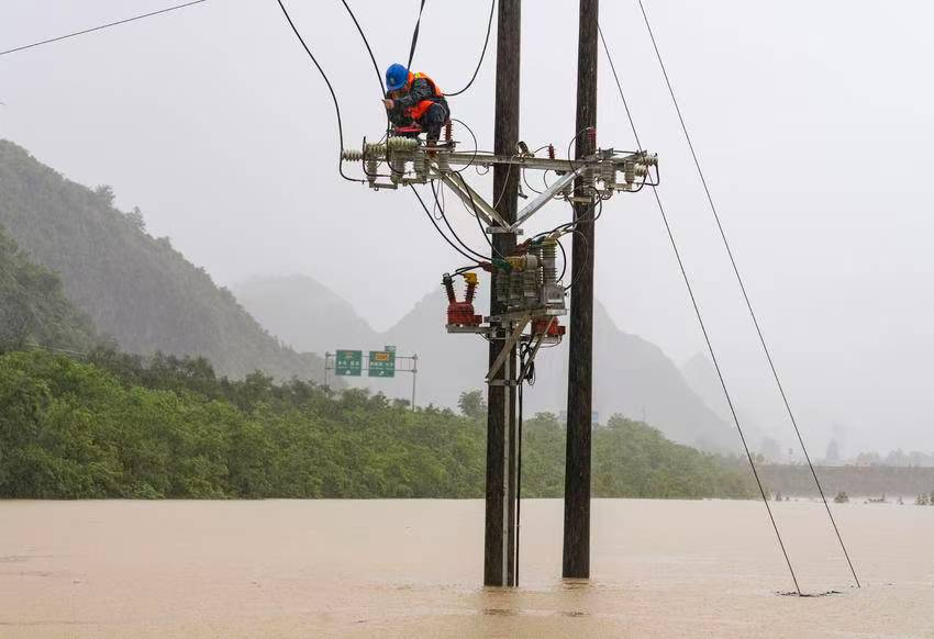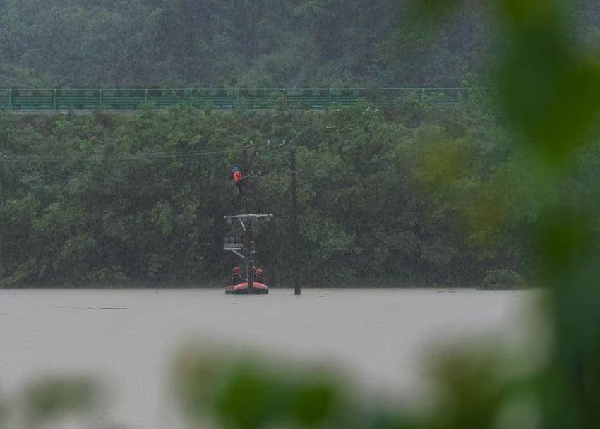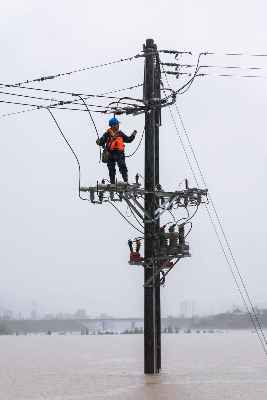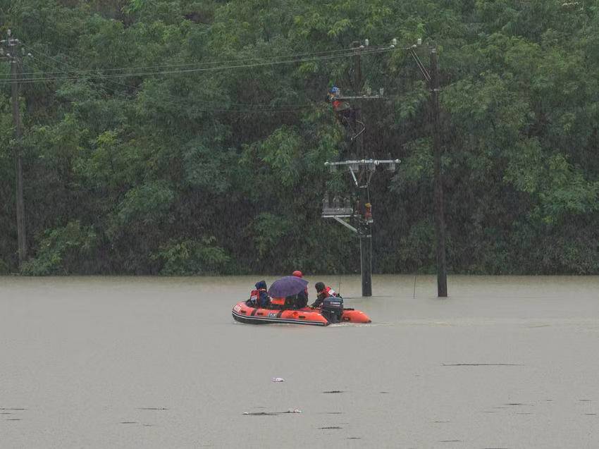 国网湖北鹤峰公司:强降雨致使电杆被淹 供电员工全力抢修