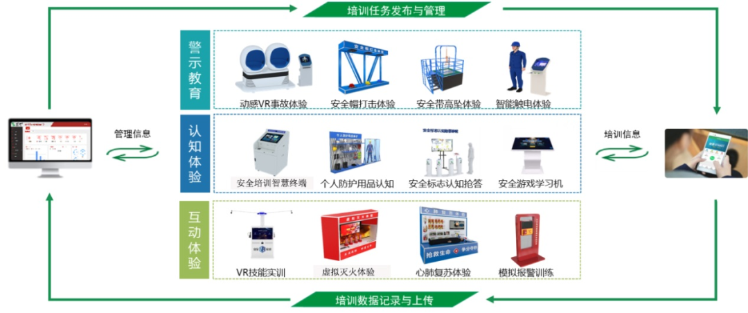 智慧安全警示教育室(中心、基地)是以体验式、自主式、信息化为标准建设,通过“知识感知、事故感悟、实操感受、综合测评、 螺旋提升”的理念,达到人员安全知识、安全意识、安全技能和应急能力的全面提升,实现企业安全培训工作常态化、安全培训监管信息化。