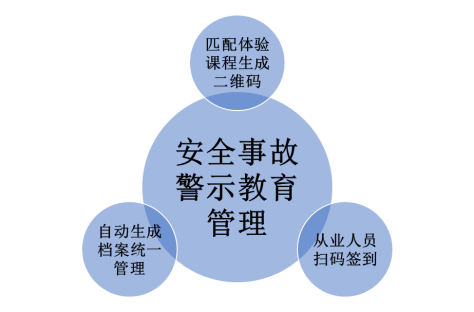 安全事故警示教育管理:安全事故警示教育管理,是对警示教育室内技能实训设备匹配与之对应的体验课程内容并生成二维码,参训人员在体验实训设备后通过手机APP扫描二维码获取体验课程对应培训学时,系统自动为该人员生成实训档案,统一线上管理。