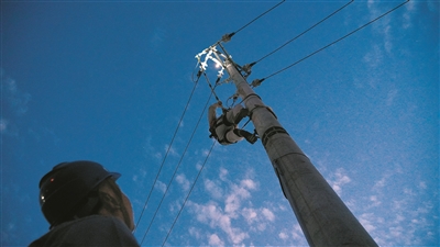 忙碌的电力人,会出现在一天的各个时段,有时是清晨,有时是正午,有时是傍晚,有时是午夜。瞧,这晚霞满天、夜幕初上的傍晚时分,他们还在为电网建设加紧施工。他们忙碌的身影仿佛与这晚霞和这夜幕融为一体,成了一幅画作。