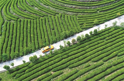 4月22日,南方电网贵州凯里岑巩供电局供电服务车驶进茶园基地,对10千伏线路进行特殊巡视,确保电力线路安全可靠运行,满足茶叶加工用电需求。杨启志 摄