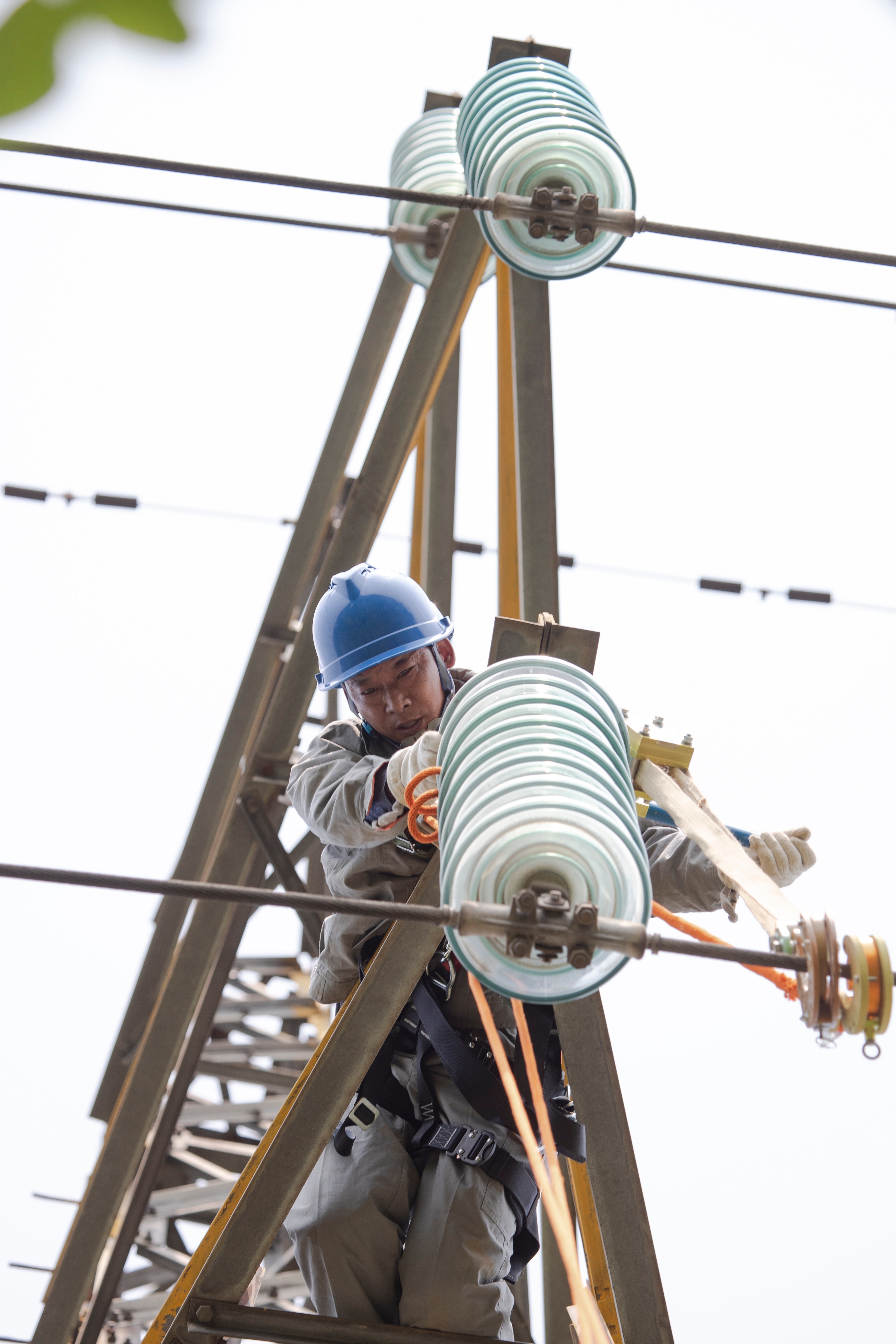 中国能源新闻网讯(田海)6月26日,四川省绵阳市涪城区塘汛镇地表温度40度,国网绵阳供电公司在110千伏丰塘线23号塔通过带电作业方式更换线路绝缘子串,确保电网安全稳定运行。