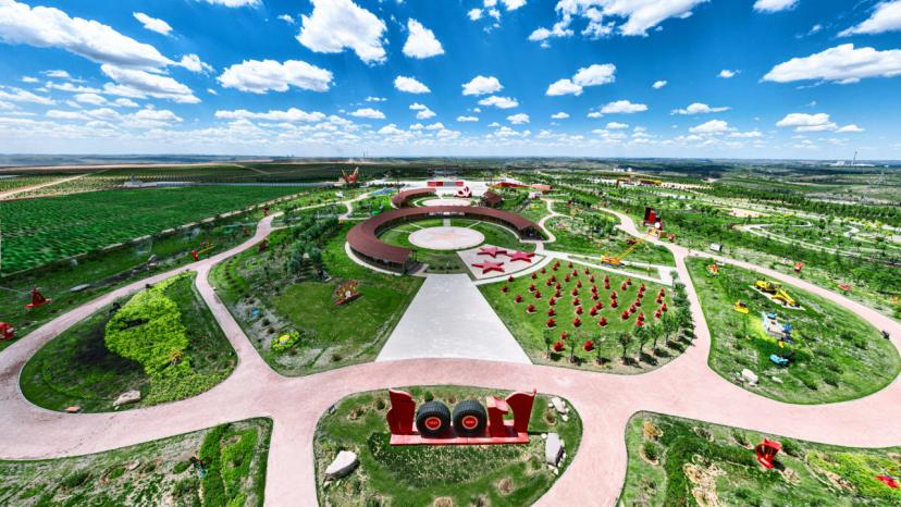 站在露天印象展览馆观礼台,与之遥望的就是正在火热建设中的准能矿业文化生态园,轮斗、395B电铲、打孔机、大型矿用煤炭转载机……这些曾经立下赫赫战功的废旧设备,正是二三十年前穆永刚等退休职工每日朝夕相处的工作“伙伴”,如今经过改装变身成为当下年轻人最喜爱的“赛博朋克”工业机械世界,造型奇特的“陆上行舟”“山生万物”“青绿气象”等多个工业主题艺术装置将在年内与游客见面。
