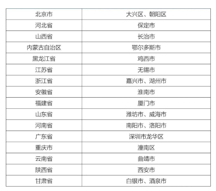 城市(区)试点名单