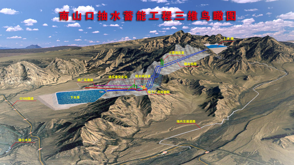 青海格尔木南山口抽水蓄能电站三维鸟瞰图。(中国长江三峡集团有限公司青海分公司供图)