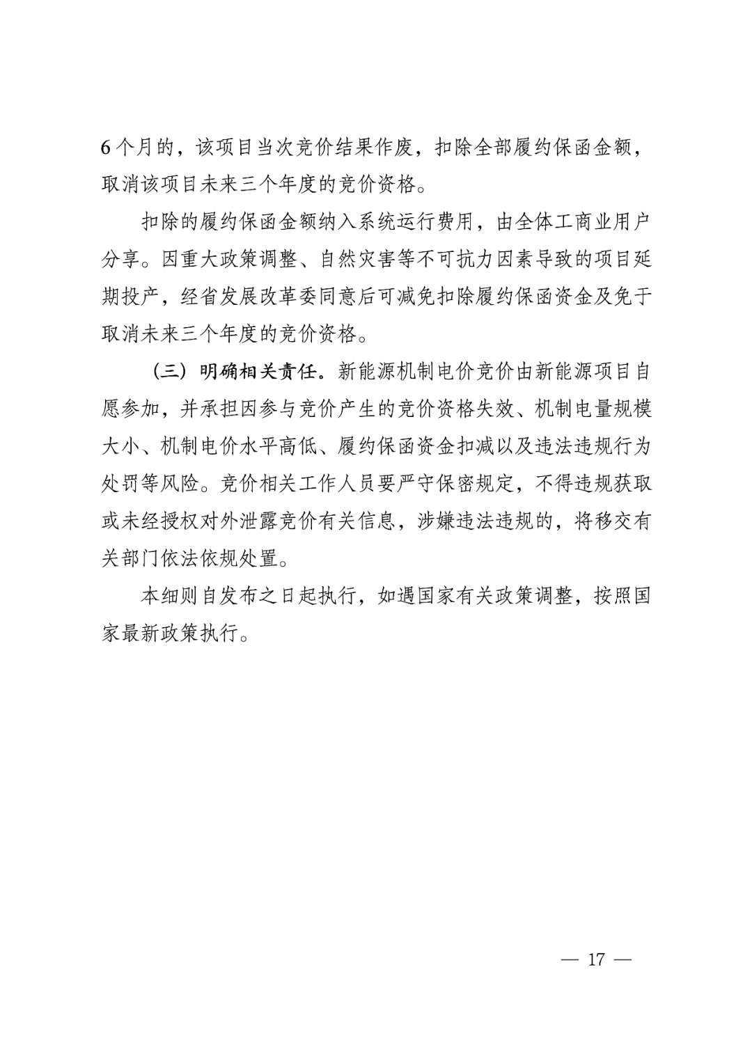 机制电量:省发展改革委统筹考虑国家下达的年度非水电可再生能源电力消纳责任权重完成情况以及用户经济承受能力等因素确定竞价机制电量总规模。超出消纳责任权重的,次年纳入机制电量总规模可适当减少;未完成的,次年纳入机制电量总规模可适当增加。