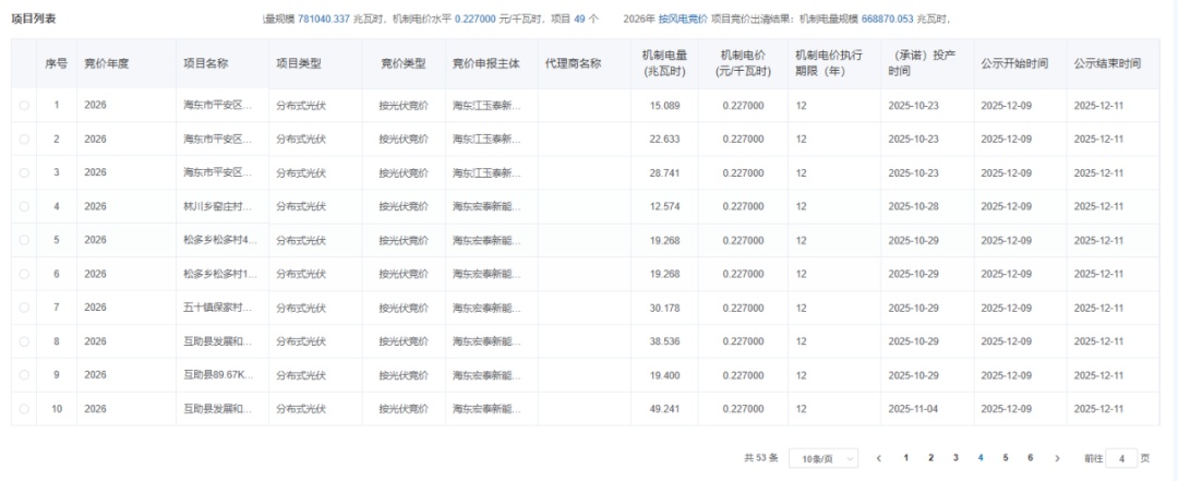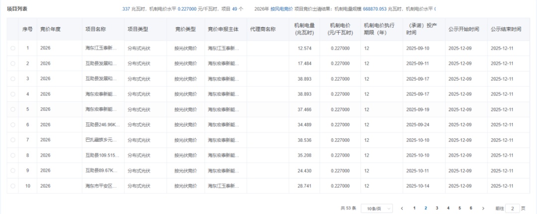 12月9日,青海公示2026年青海省新能源机制电价竞价结果。