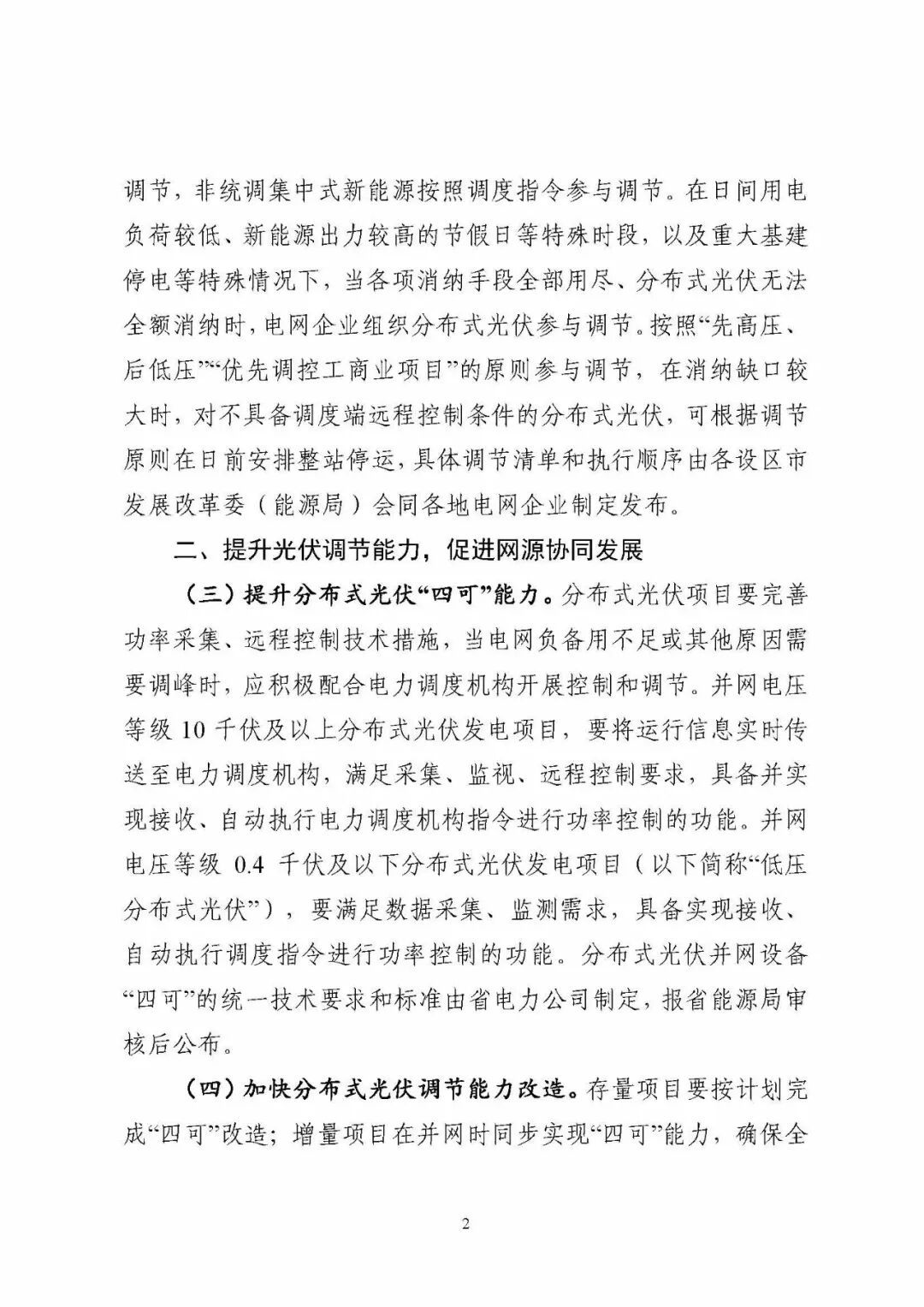 同时,文件要求提升光伏调节能力,促进网源协同发展。要提升分布式光伏“四可”能力,并加快分布式光伏调节能力改造。