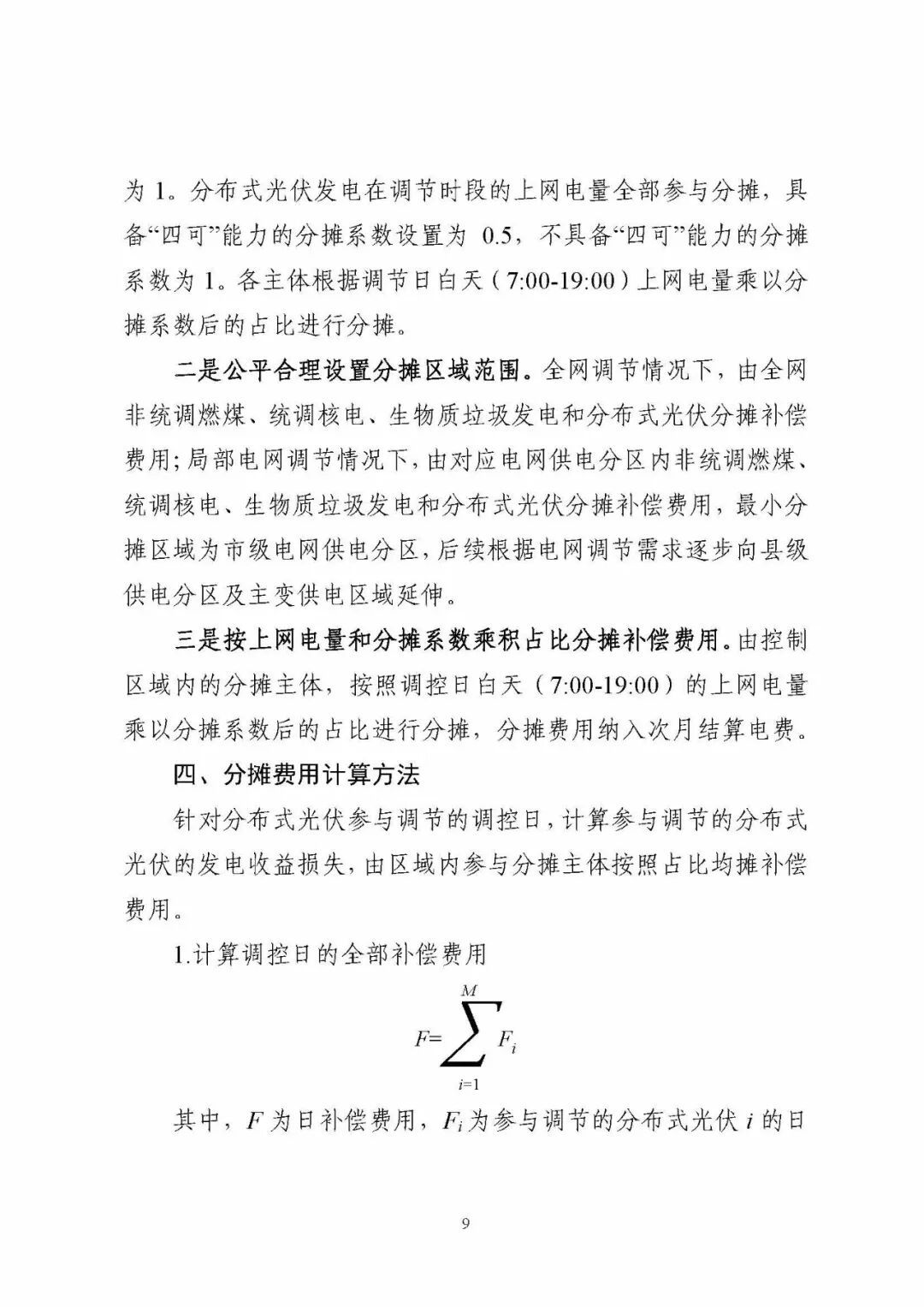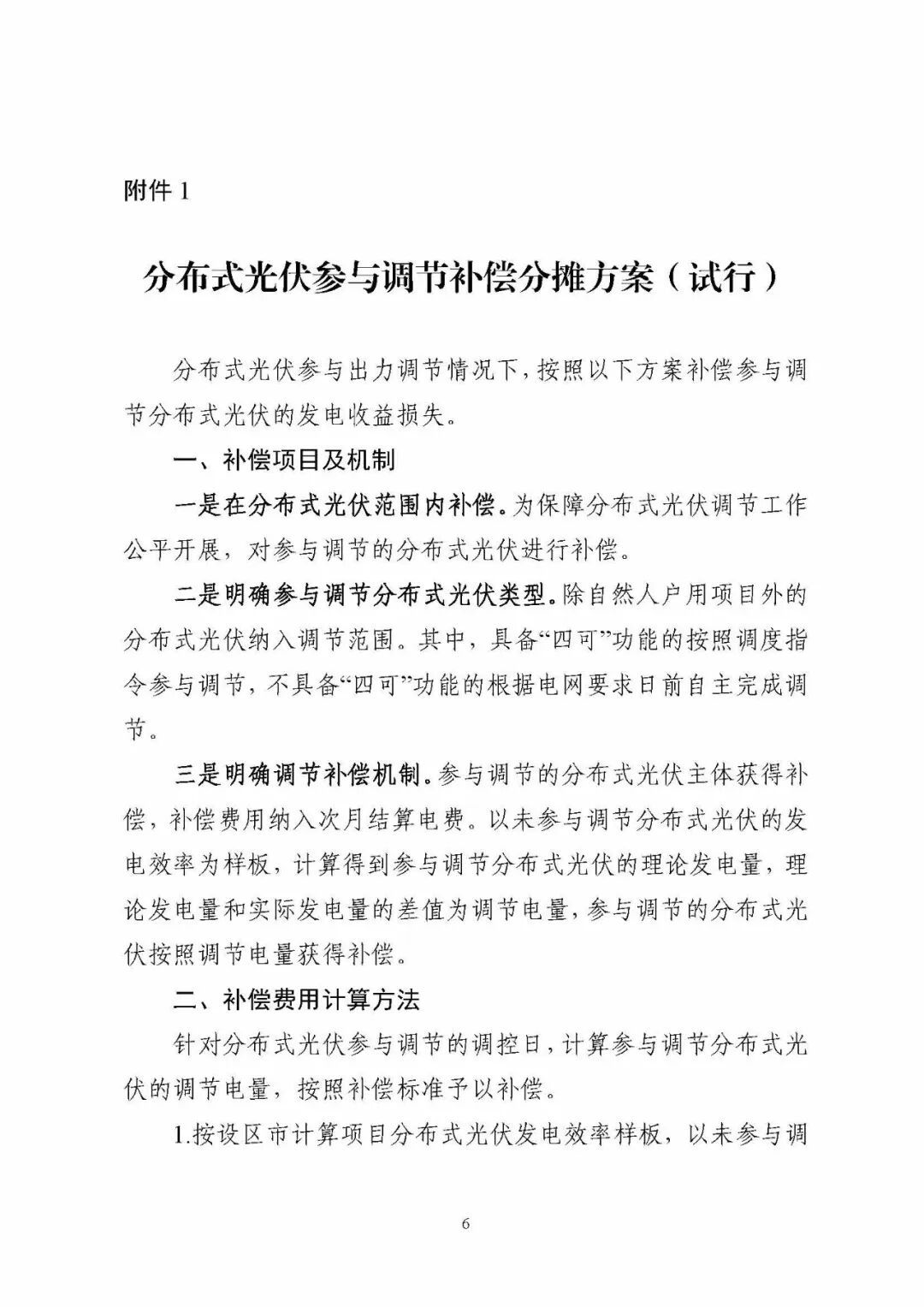 参与调节的分布式光伏主体获得补偿,补偿费用纳入次月结算电费。补偿资金由非统调燃煤、统调核电、生物质垃圾发电和分布式光伏发电主体(除自然人户用项目外)进行分摊。