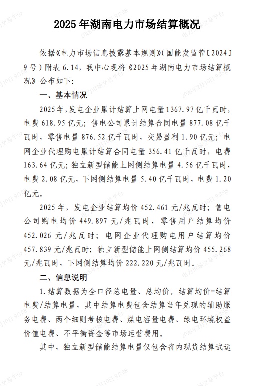 2026年2月10日,湖南电力交易中心发布了2025年湖南电力市场结算概况。