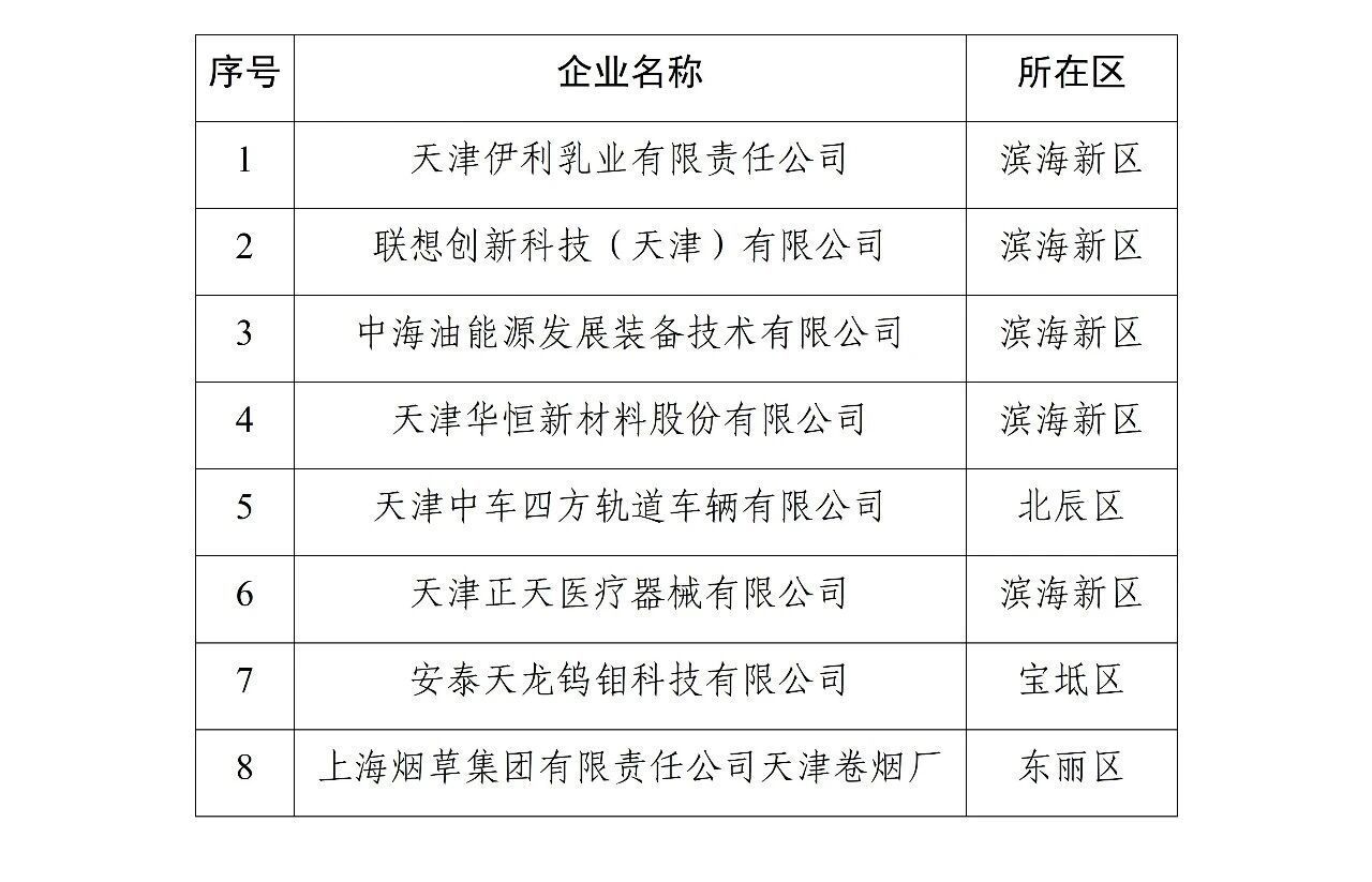 附:天津市第一批“零碳”工厂名单
