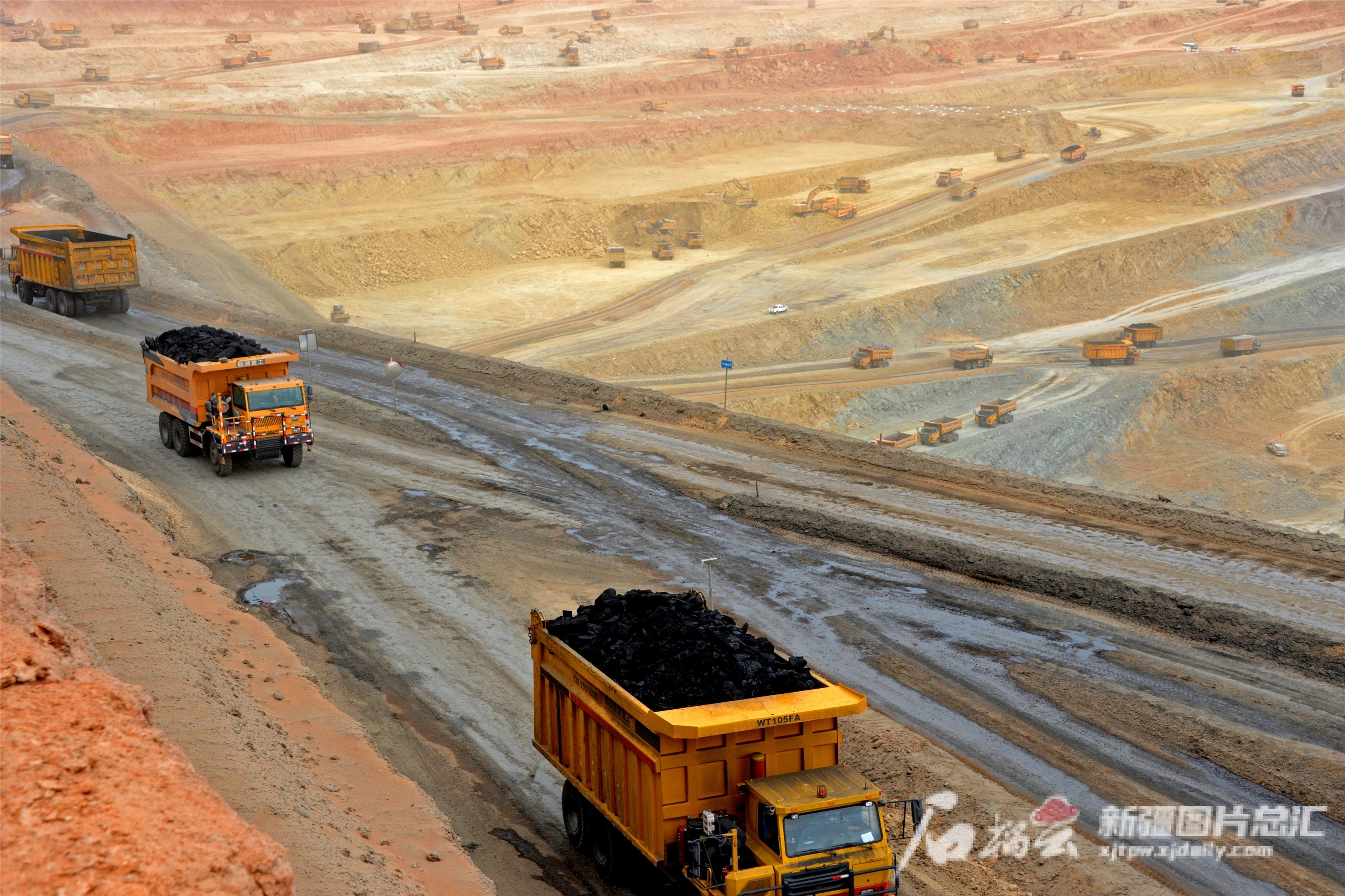 巴里坤三塘湖石头梅一号露天煤矿,货车在运煤。张建刚摄