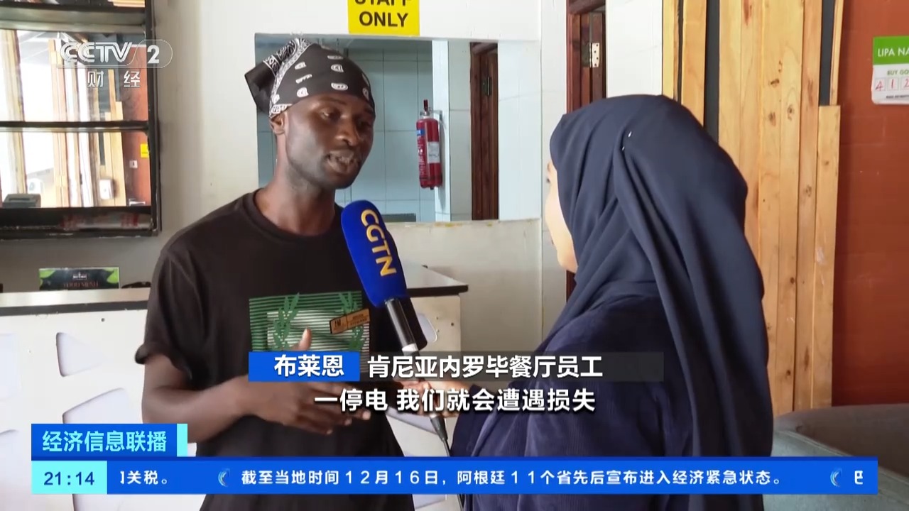 肯尼亚内罗毕餐厅员工 布莱恩:一停电我们就会遭遇损失,我们能提供的服务很少,对此有意见的顾客可能就不来了,销售额直接受到影响。