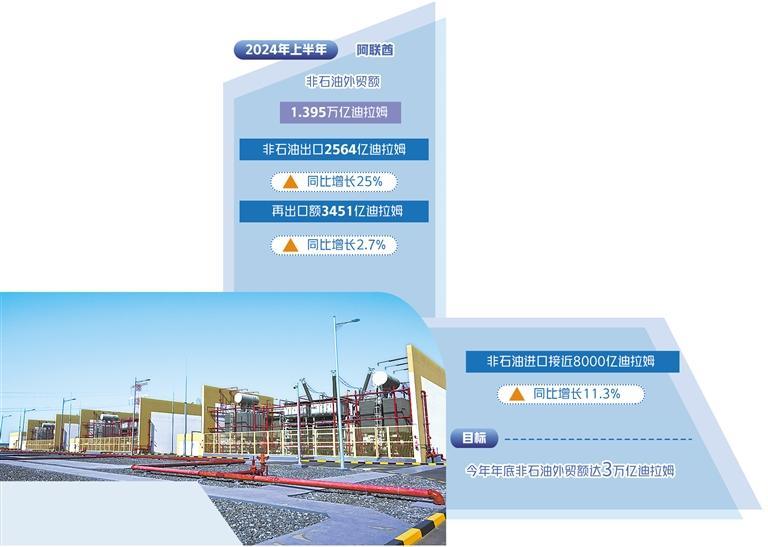 阿联酋国家媒体办公室8月25日发布数据显示,2024年上半年,阿联酋非石油对外贸易额快速增长,达到1.395万亿迪拉姆(约合3810亿美元),与2023年上半年相比增长11.2%;今年年底有望实现非石油外贸额3万亿迪拉姆的目标。强劲的数据凸显了阿联酋经济多元化战略的成功。