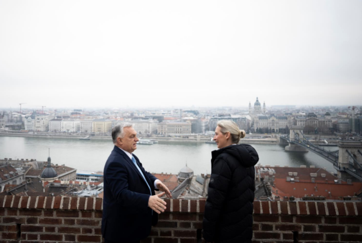匈牙利总理欧尔班当地时间2月12日在布达佩斯与到访的德国选择党联合主席爱丽丝·魏德尔举行会谈,之后双方共同出席新闻发布会。