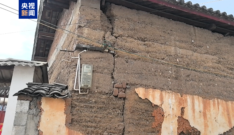 4月24日0时8分洱源县牛街乡发生4.8级地震,震源深度10千米,洱源县9乡镇均有震感。从下列图片中,可以清晰看到墙体开裂。