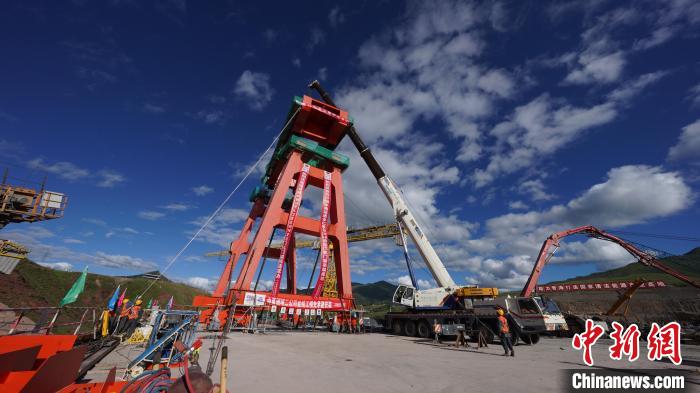图为玛尔挡水电站首台坝顶门机顺利完成吊装。赵成悦摄