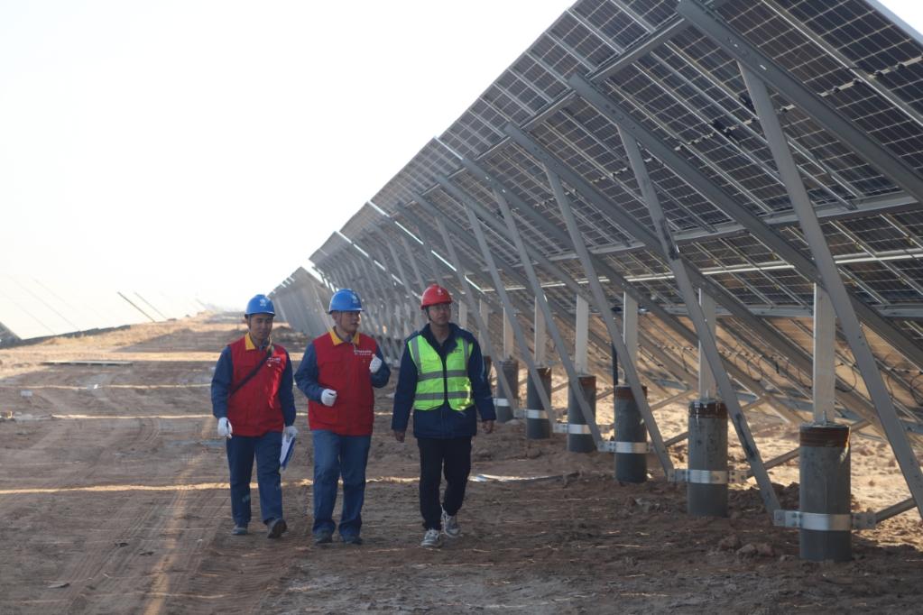 12月8日,国网阿克苏供电公司工作人员来到国家电投阿拉尔光伏一电站进行隐患排查。(马海骄 摄)