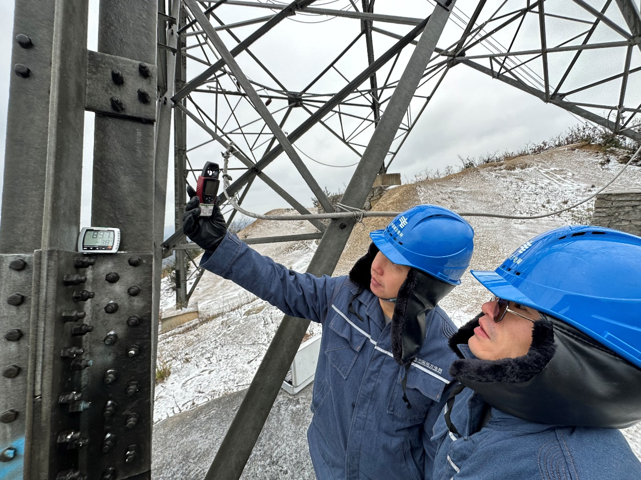 为全面迎战强寒潮,12月17日,南方电网超高压公司贵阳局工作人员赴毕节地区±500千伏牛从甲乙线重冰区开展防冰特巡。该局还通过覆冰在线监测系统、无人机特巡等方式,密切监测冰情发展趋势,确保西电东送主网架安全稳定运行。(韩旭 郭帆 吕露 摄)
