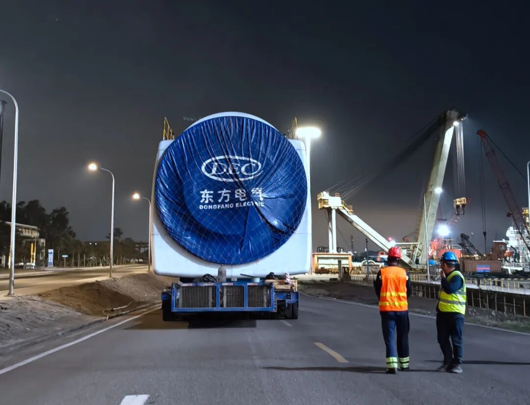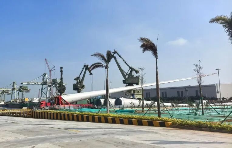 近日,东方电气集团所属东方风电研制、东方物产运输的118米风电叶片、塔筒及机舱等关键设备从宝钢湛江钢铁成品码头、重件码头平稳驶出,抵达广东湛江,标志着华润湛江风电项目——国内首个工业园区级大容量分散式风电项目完成海上大型风机设备全流程运输。