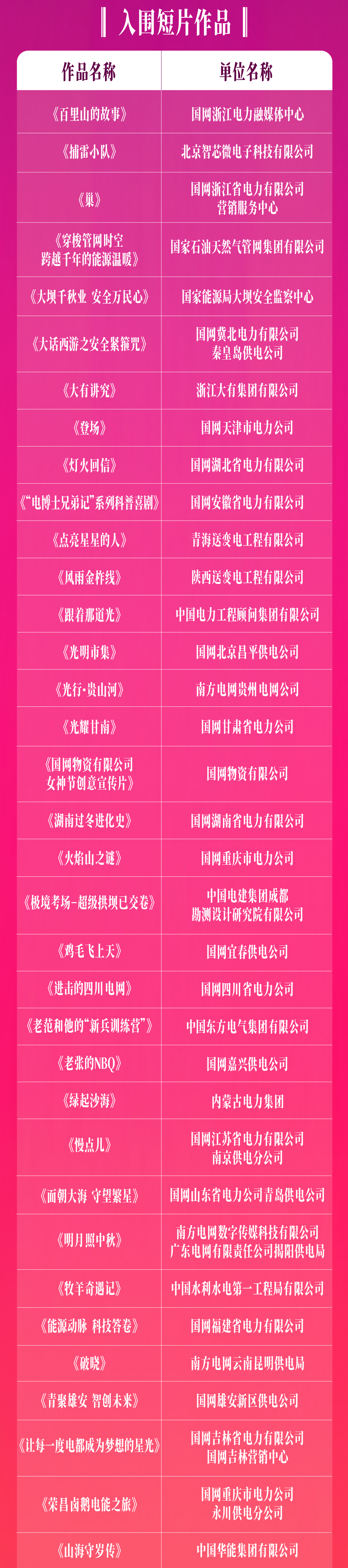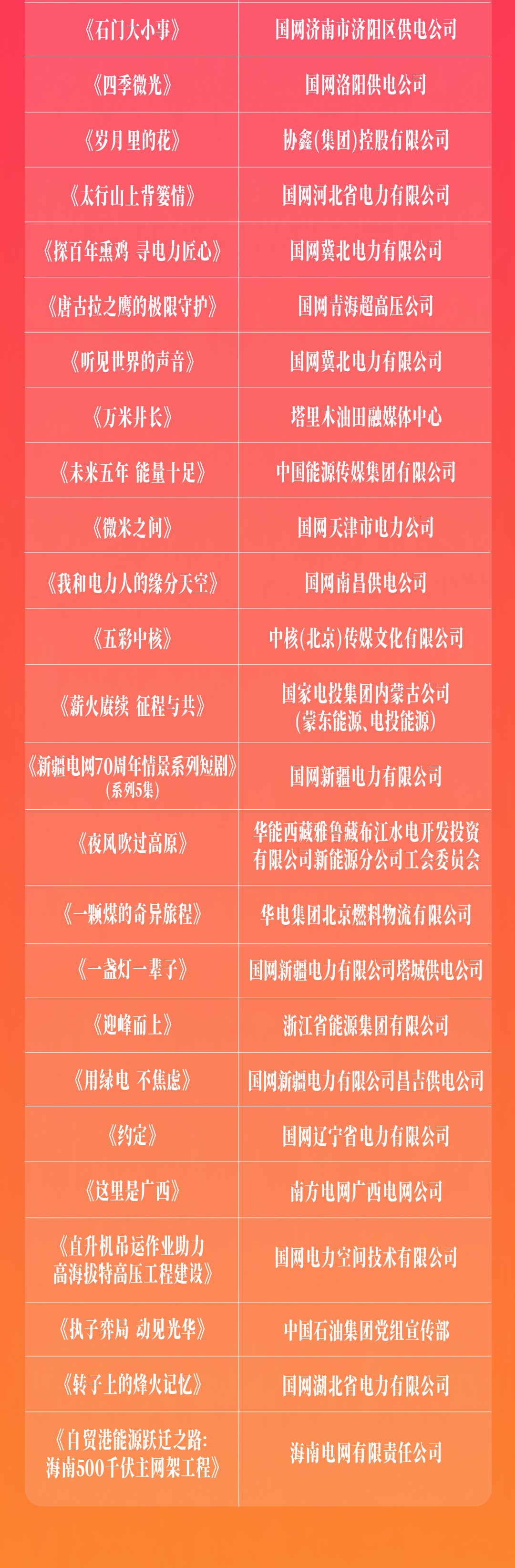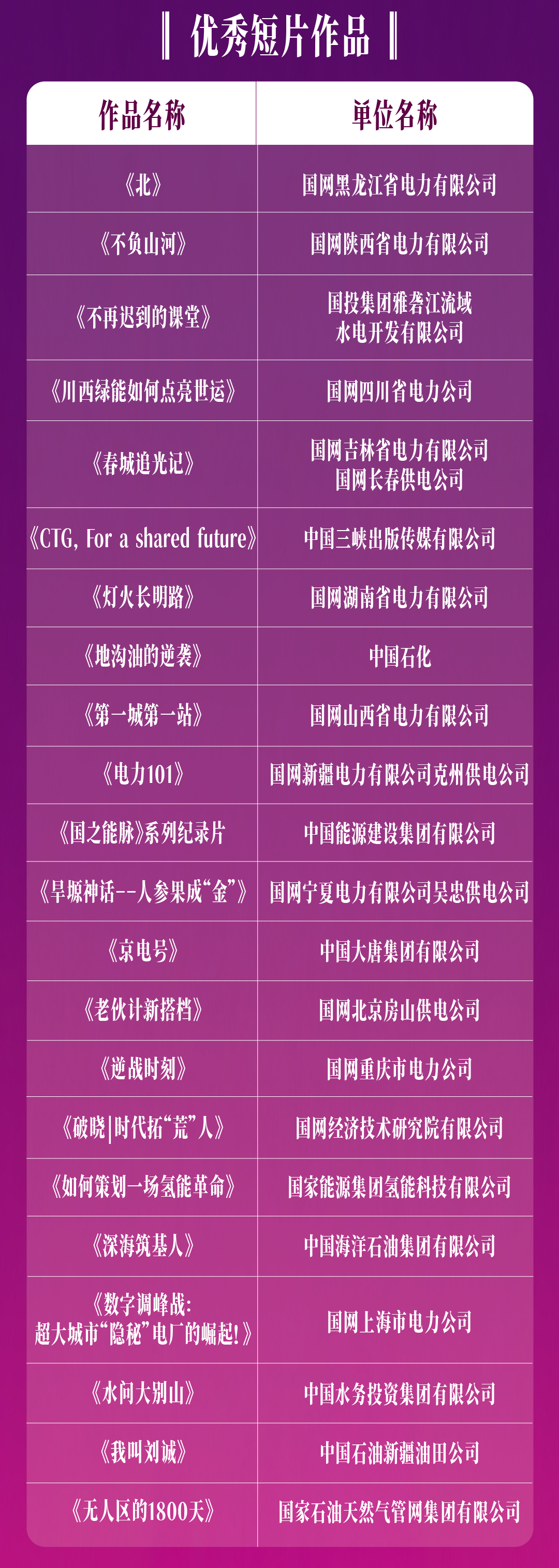 「能源中国·优秀短片作品」推荐名单