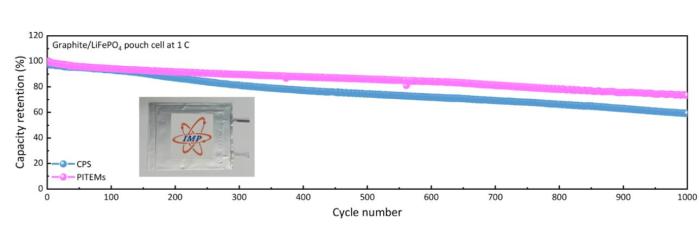 本次研究的磷酸铁锂软包电池的长循环性能对照。中国科学院近代物理研究所/供图