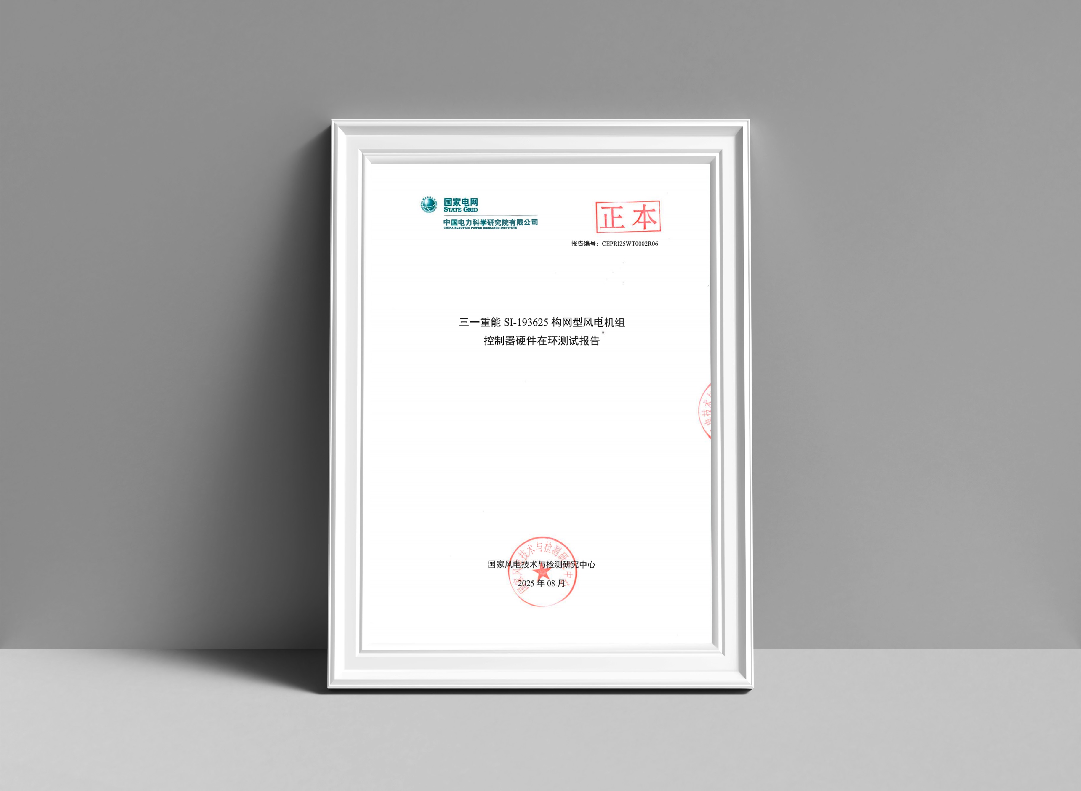 近日,三一重能SI-193625构网型双馈风电机组成功通过中国电力科学研究院(以下简称“中国电科院”)的构网型特性测试,获得国内首张针对双馈风机的硬件在环测试报告,标志着三一重能成为国内首家双馈构网型技术获得权威机构认证的风电整机企业。