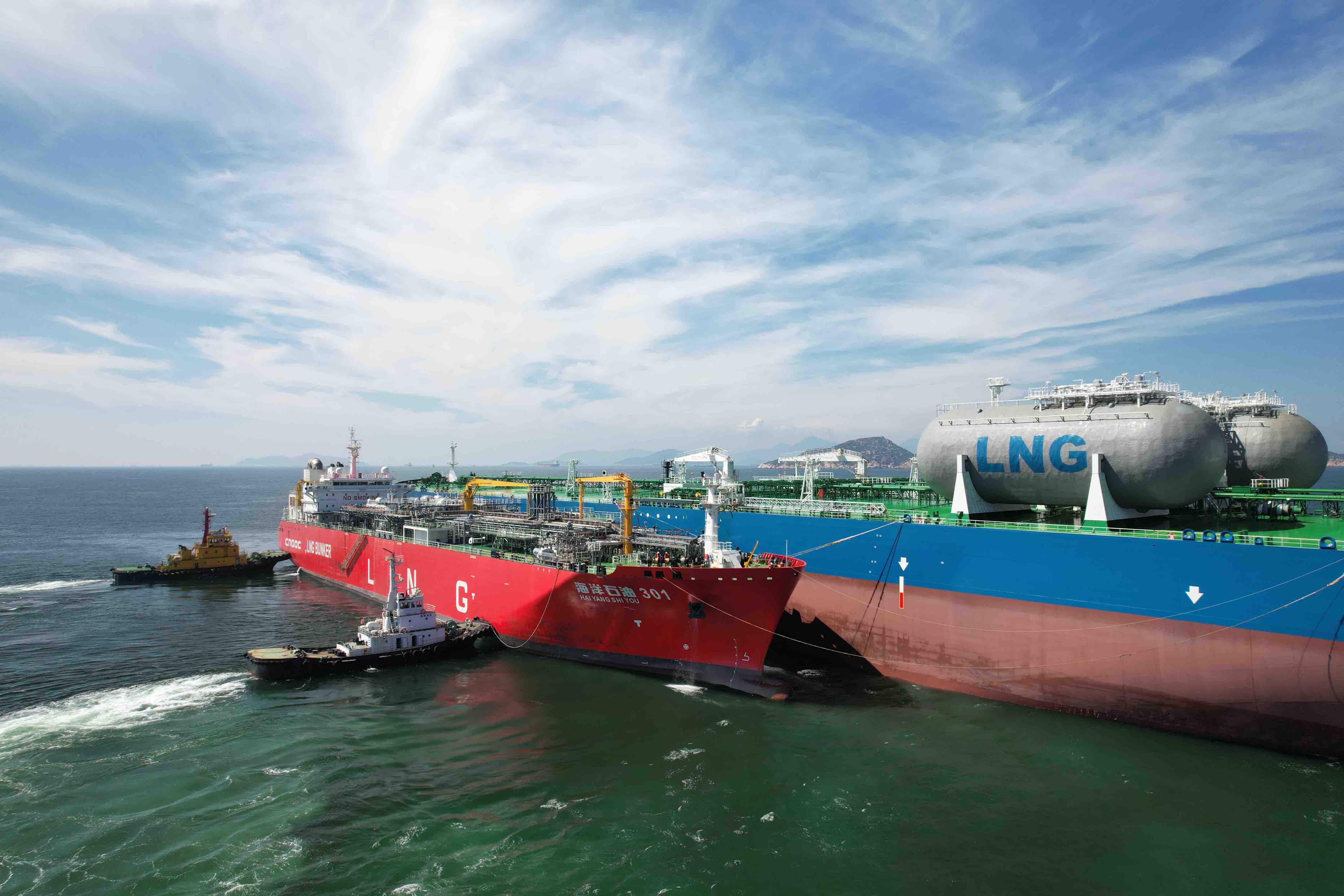记者4日从中国海油获悉,8月3日,我国首艘、全球最大液化天然气运输加注船“海洋石油301”在广州港锚地,成功为全球最大吨级双燃料超大型油轮提供保税液化天然气加注服务,我国国际船舶液化天然气加注产业步入世界前列。