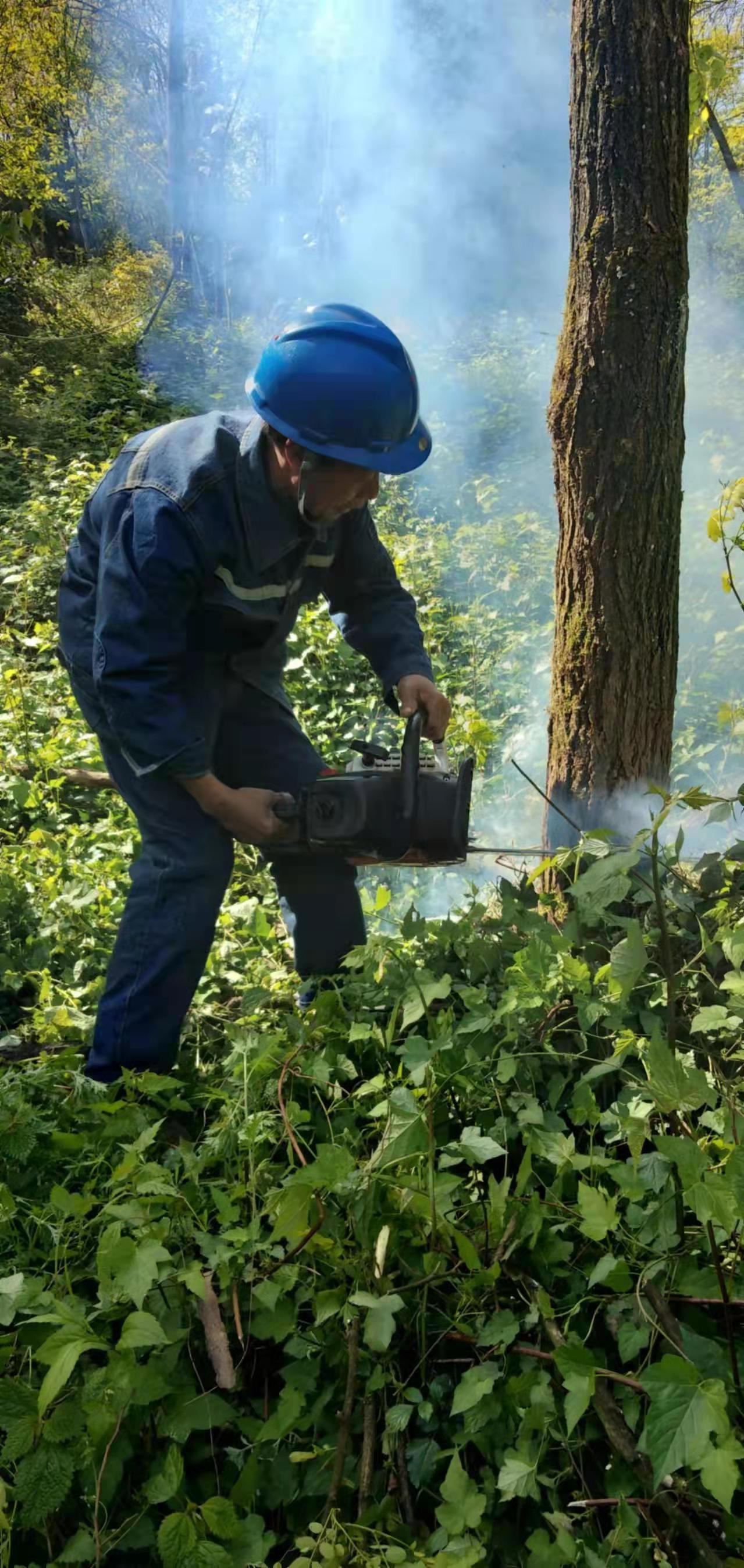 木担坝煤矿习木线全线长6.55公里,民木线全长8.6公里,由于2021年对“双回路”供电系统进行改造,新的线路沿线多数处于山林状态,再加上春季的温湿度加快草木生长,对矿井供电线路造成威胁,加大此次巡线和砍青的工作难度。为确保此次砍青工作的顺利进行,该矿详细制定方案,从相关职能部门抽调人员,对新线路沿线进行勘察、电线杆基础、电线杆完好情况、线缆接地、绝缘等进行扎实检查,并积极和当地林业部门及村民协调,对沿途线路下方15米范围内的青苗作物及周围超高有可能发生倒塌影响供电线路的高大树木等进行砍伐清理。