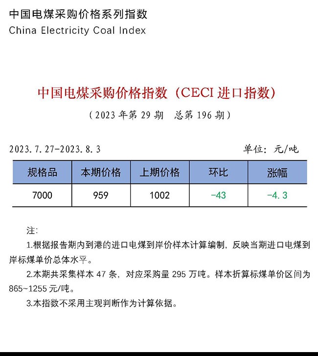 中国电煤采购价格指数(CECI曹妃甸指数)第938期