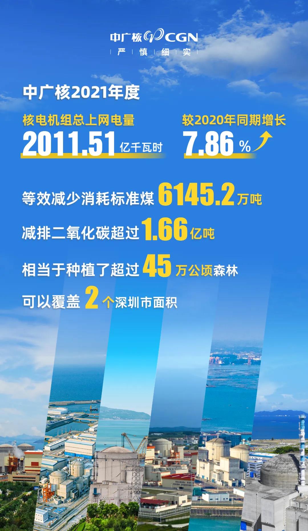 中广核2021年度核电机组总上网电量2011.51亿千瓦时 减排二氧化碳超1.66亿吨
