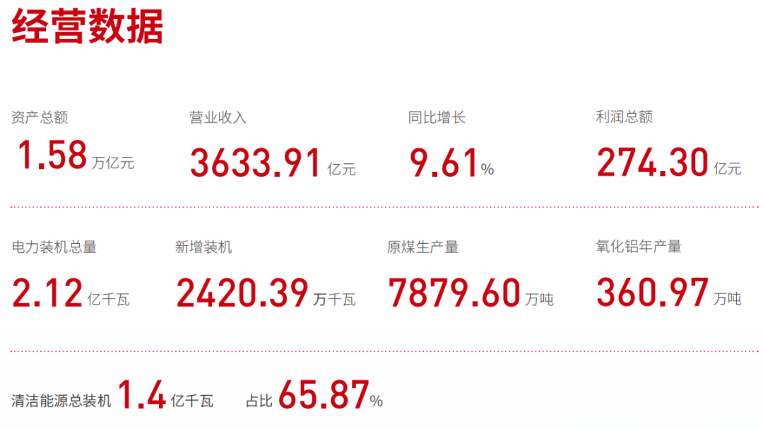 截至 2022 年底,国家电投资产规模 1.58 万亿元,员工总数 12.65 万人,所属二级单位 64 家。电力总装机 2.12 亿千瓦,其中清洁能源装机 1.4 亿千瓦,占比 65.87%,新能源发电装机量、可再生能源发电装机量均居世界第一;获得了“最大装机容量的光伏发电园区”和“最大装机容量的水光互补发电站”两项吉尼斯世界纪录。“光伏治沙”为沙戈荒滩增添了绿色新意,“暖核一号”让海阳成为全国第一个零碳供暖城市,“新能源 +”范式不断拓展的应用场景正在点亮千村万落。